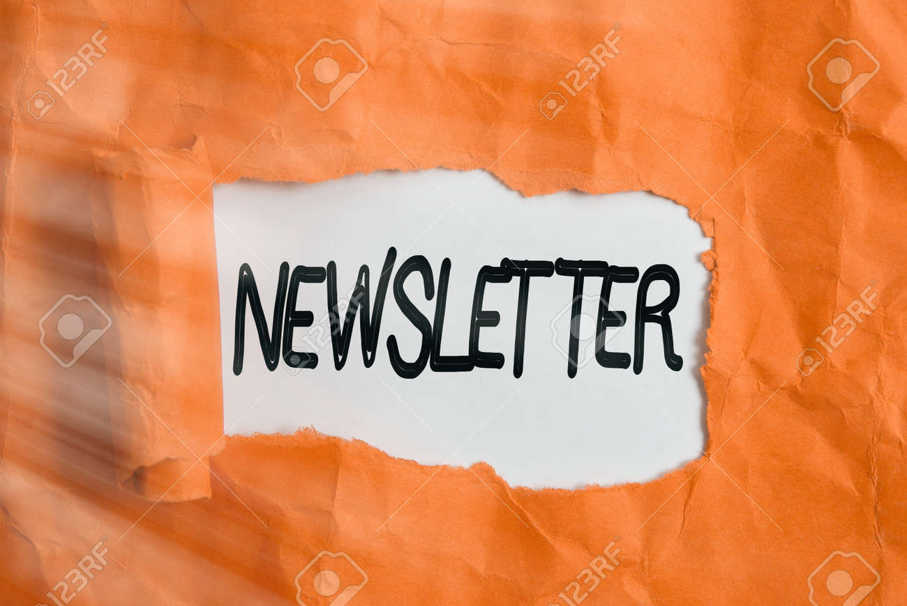 A vibrant, crumpled orange backdrop showcases a torn white paper with elegant black lettering declaring 'NEWSLETTER', perfect for capturing attention in the digital age.