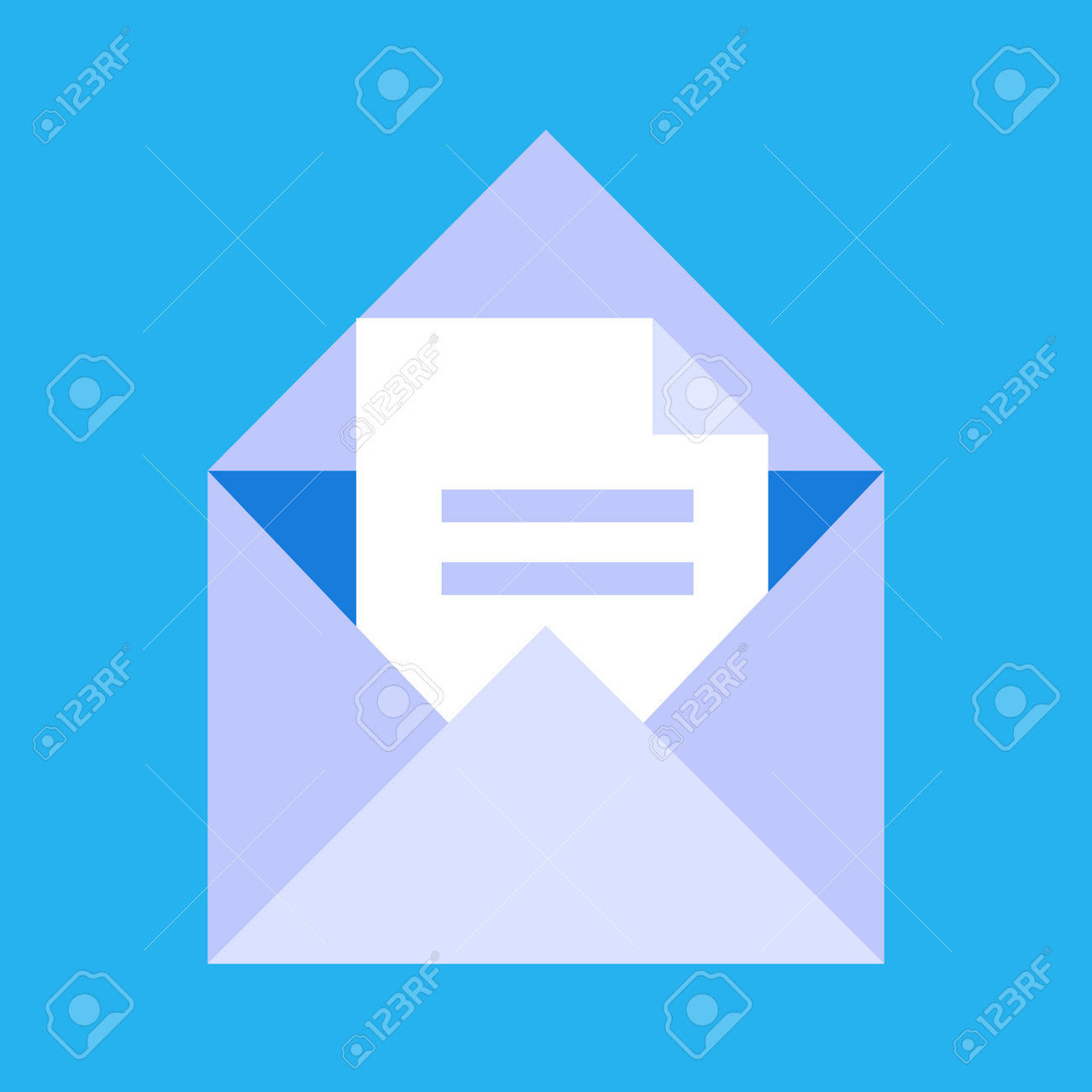 An open envelope with a document. For web design. Isolated on a blue background.