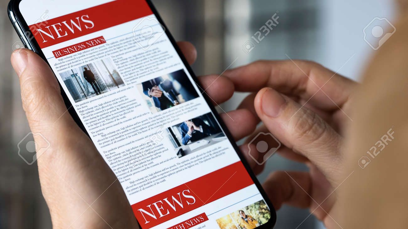 A person engages with the latest news on their smartphone, scrolling through a vibrant interface filled with headlines and images. The focus on current events highlights the importance of staying informed in today's fast-paced world.