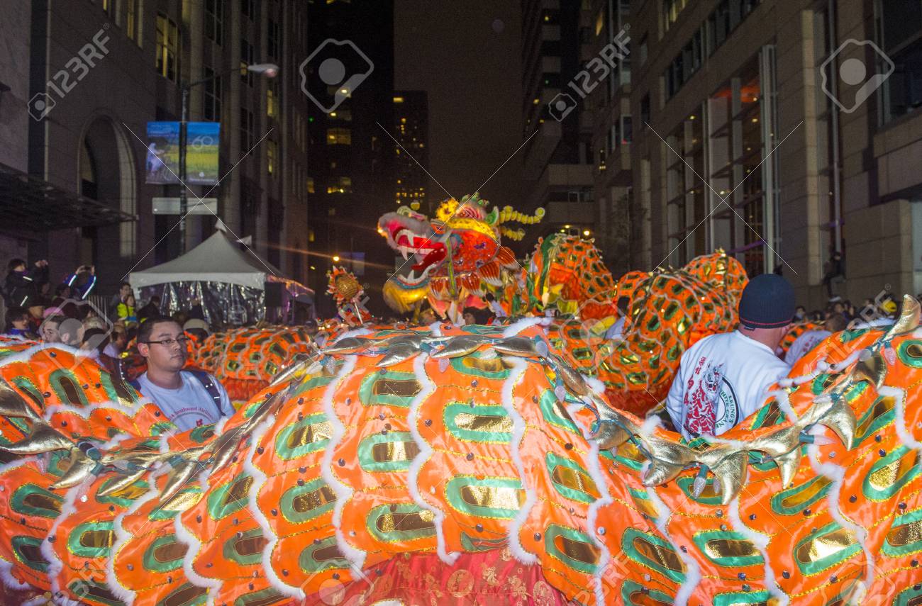 SAN FRANCISCO - FEB 15 : An unidentified participants in a Dragon dance at the Chinese New Year Parade in San Francisco , California on February 15 2014 , It is the largest Asian event in North America  - 27094809