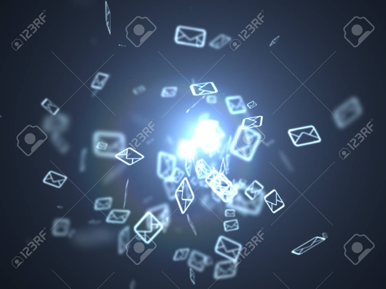A mesmerizing whirlwind of digital messages bursts forth into the light, symbolizing the flow of communication in the modern world. Each envelope represents a connection waiting to be made, illuminating the path of interaction between individuals and technology.