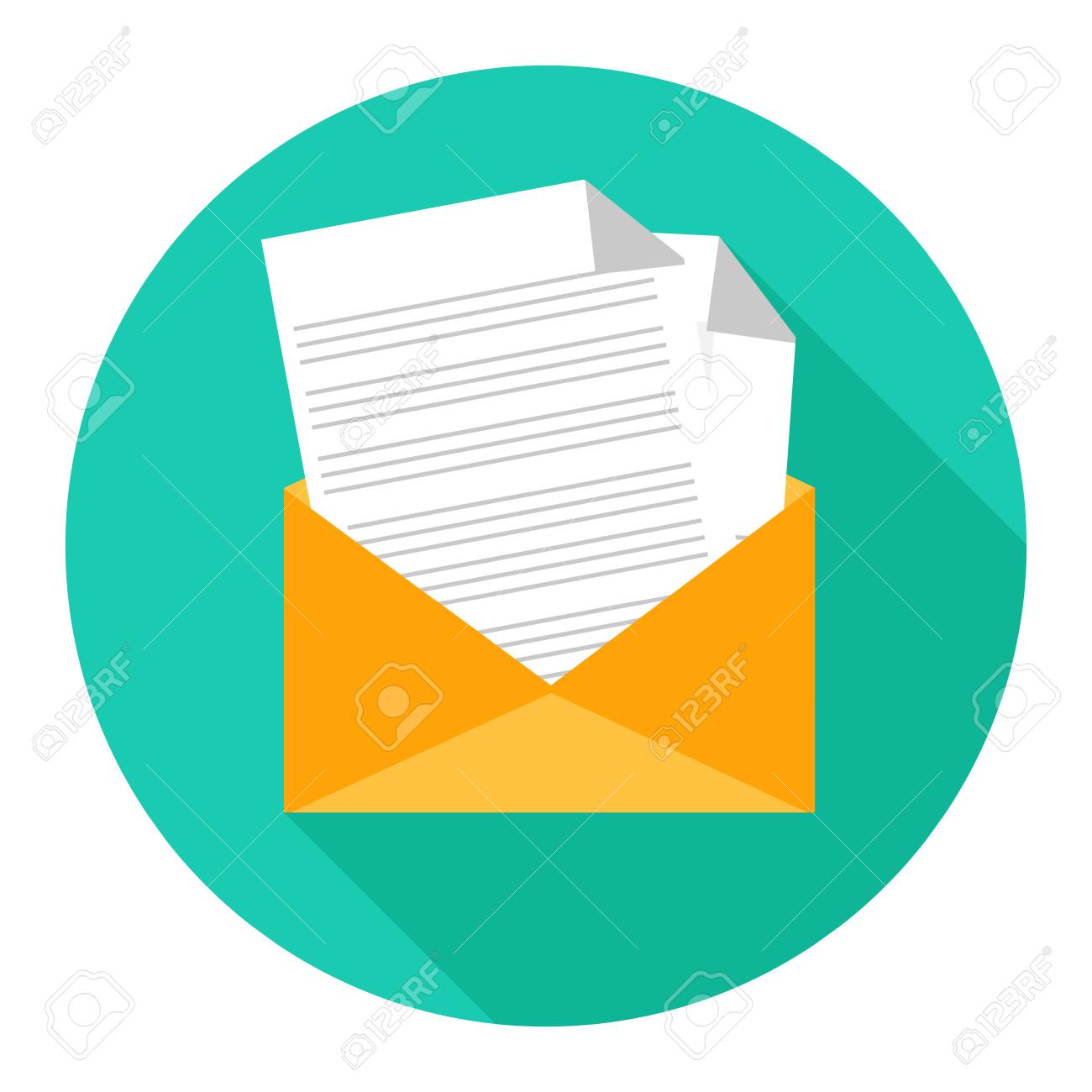 Envelope with letter icon. Flat design. Vector illustration.