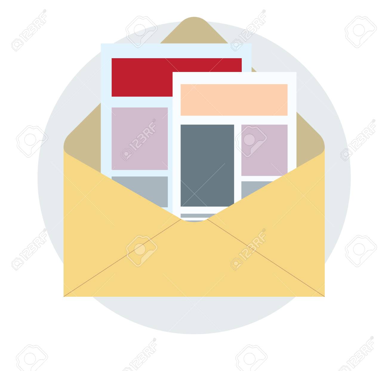 Envelope with photos icon. Flat color design. Vector illustration.