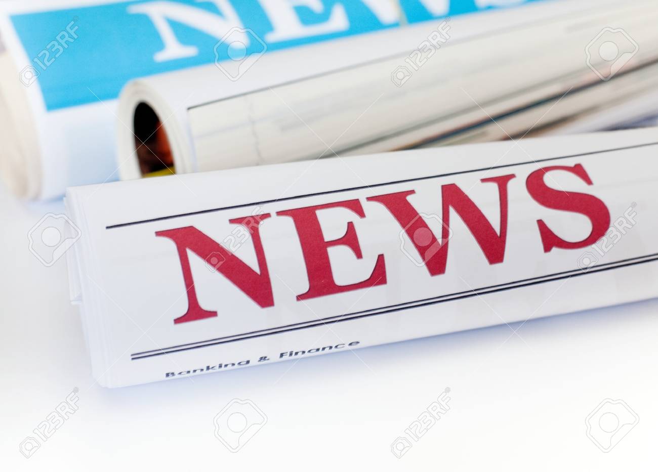 Newspaper with news headline isolated on white background. News concept.