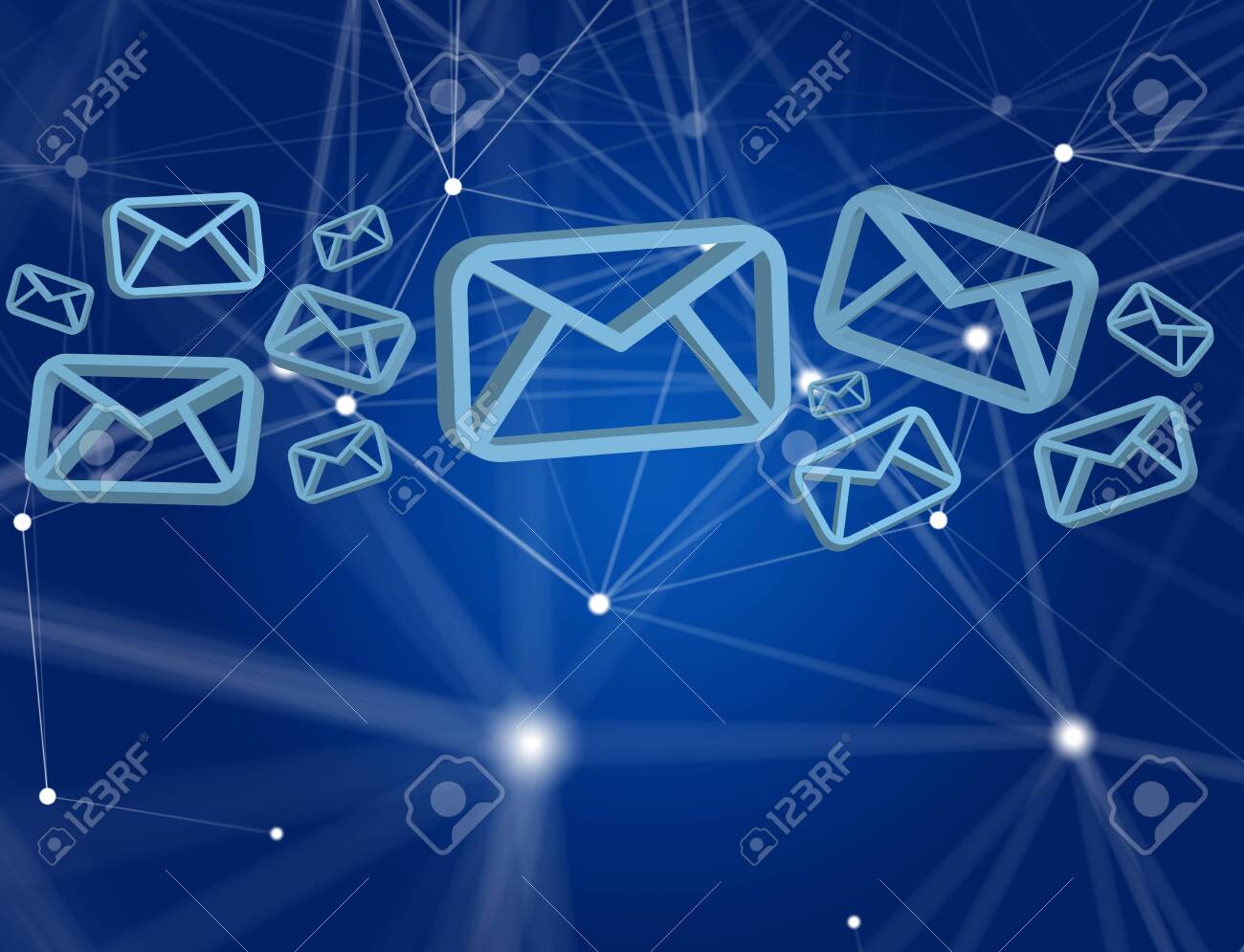 A digital network of communication, where glowing envelopes symbolize the exchange of messages across a technological landscape, illustrating the essence of connectivity in the modern world.