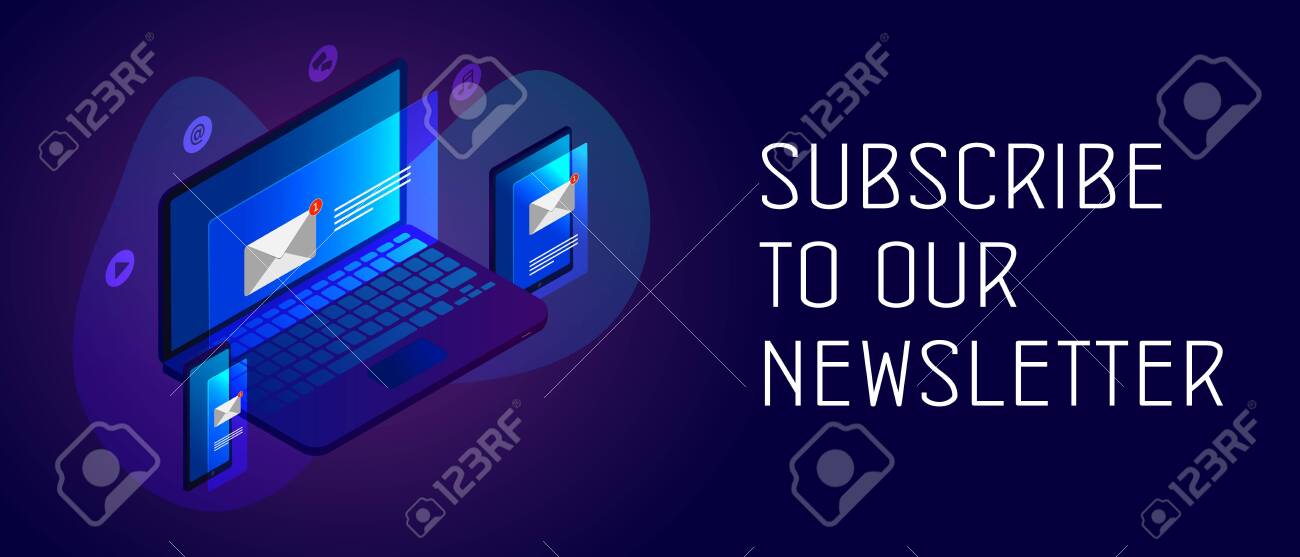 Subscribe to our newsletter banner. Isometric illustration of subscribe to our newsletter vector banner for web design
