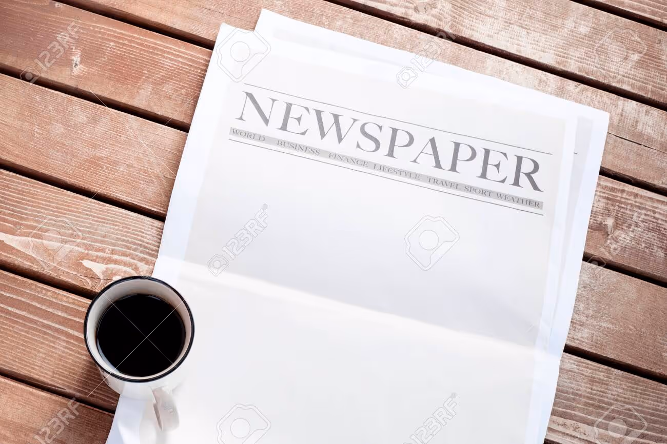 A peaceful morning scene featuring a steaming cup of coffee beside an open newspaper, inviting moments of relaxation and reflection before the day begins.