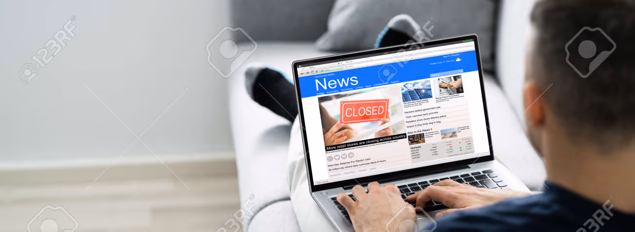 Engrossed in the latest headlines, a man scrolls through a news website on his laptop, reflecting the ongoing changes in the world around him. The digital age transforms how we consume information, bridging the gap between reality and virtual perspectives.