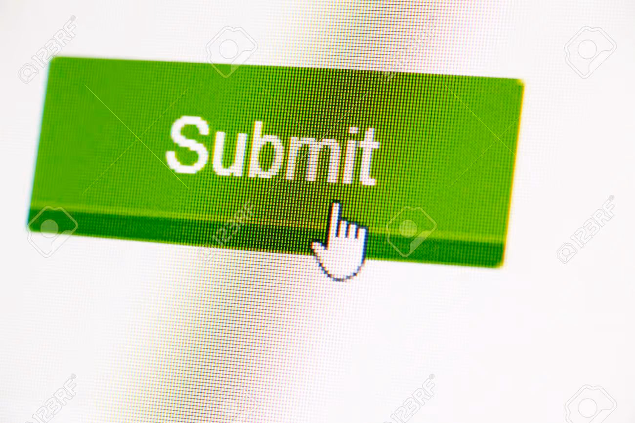 A hand poised above a vibrant green 'Submit' button, symbolizing the decisive moment of digital engagement and action in the online world.