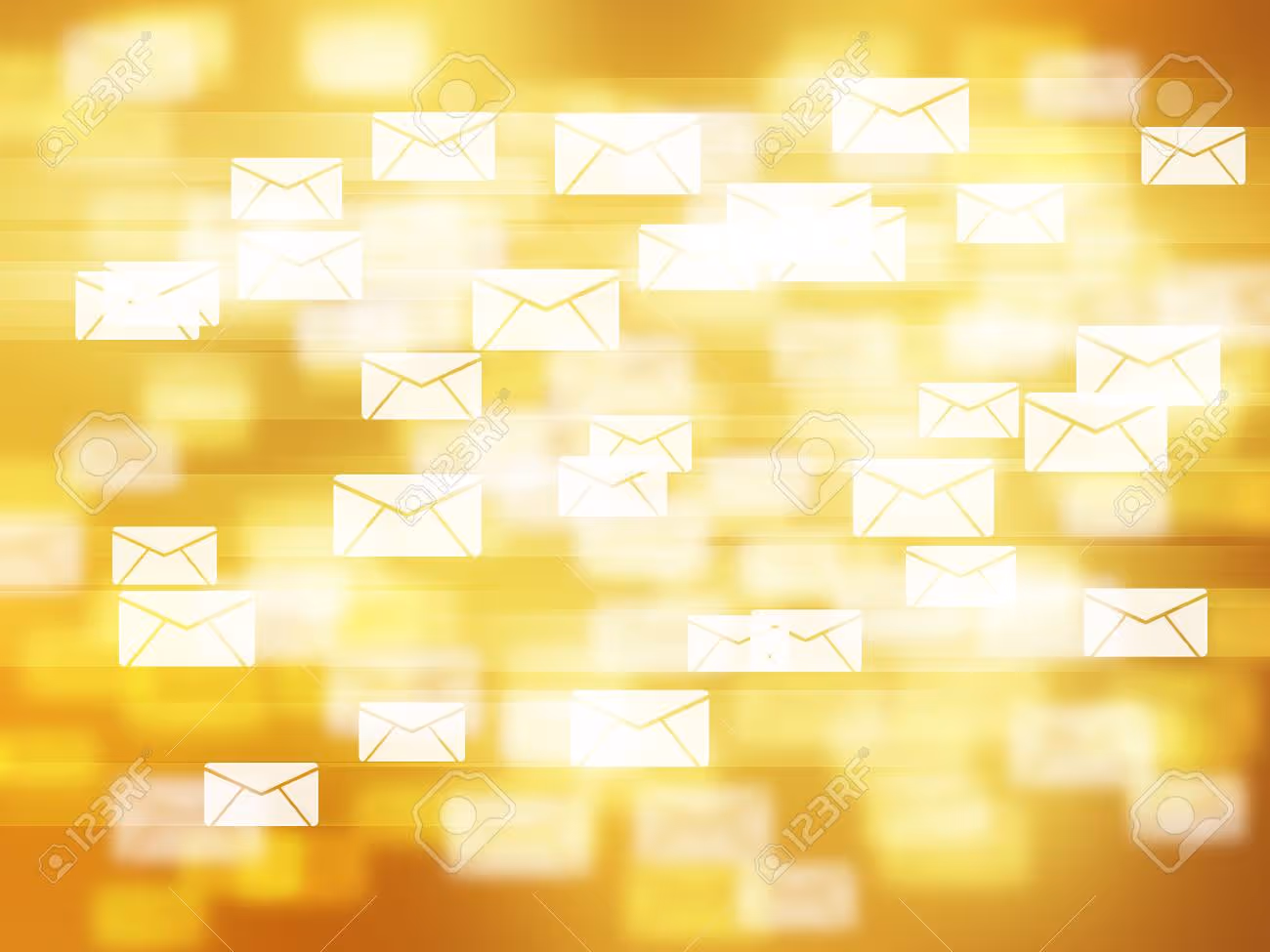 A cascade of digital envelopes dances through a luminous golden backdrop, symbolizing the flow of communication in the digital age. Each envelope represents a message waiting to be opened, connecting people across distances and time.